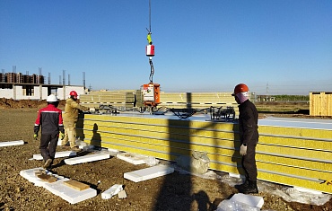 Манипулятор и вакуумный захват Arlifter GS-350 помогли при строительстве ангара из сэндвич-панелей.