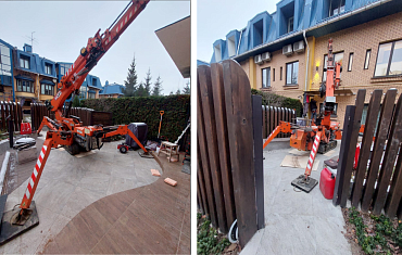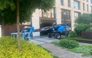 Техника компании Арлифт помогла смонтировать стеклопакеты с помощью мини-крана и дополнительного оборудования – манипулятора.