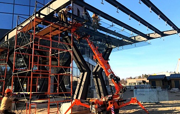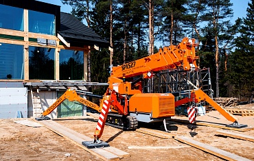 На берегу Ладожского озера мини-кран Jekko SPD360CDH произвел потолочный монтаж и остекление строящегося гостиничного комплекса