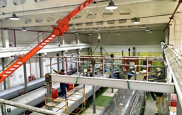 Техникой АРЛИФТ произведен монтаж площадок для оборудования весом 1300 килограммов на высоту 5-6 метров в крайне стеснённых условиях на заводе