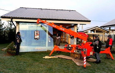 Остекление загородного коттеджа с помощью вакуумного захвата GS-500 и мини-крана 527