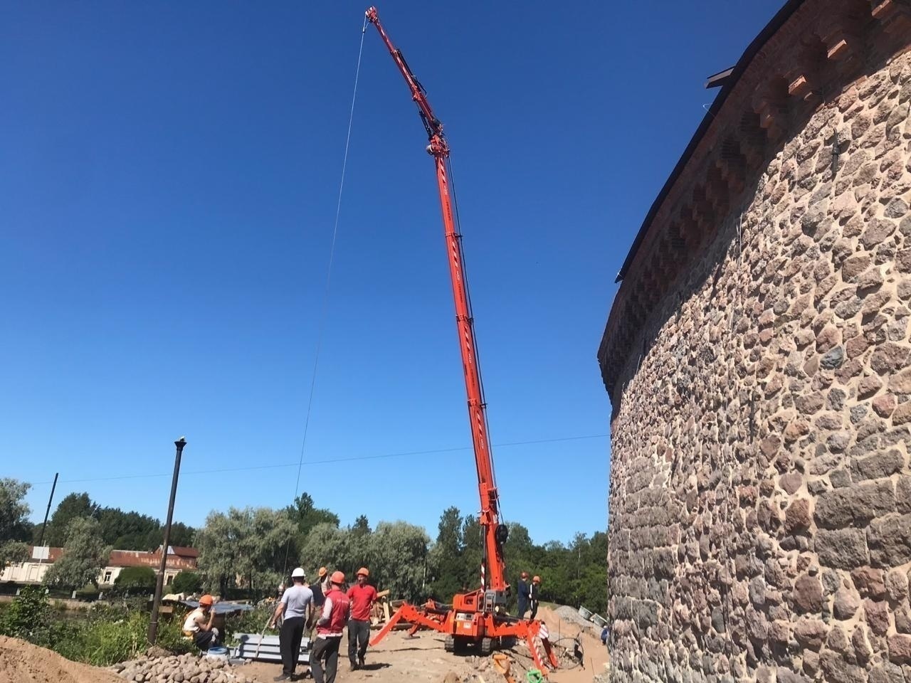 В этот раз предпочтение отдали замене кровли на одном из сооружений исторического памятника. Монтаж и демонтаж помогал производить мини-кран SPX527CDH – одна из самых популярных моделей в арендном парке Арлифт. Грузоподъемность оборудования достигает 2,7 тонн, а максимальная высота подъема, с учетом механического гуська, 17,5 метров.