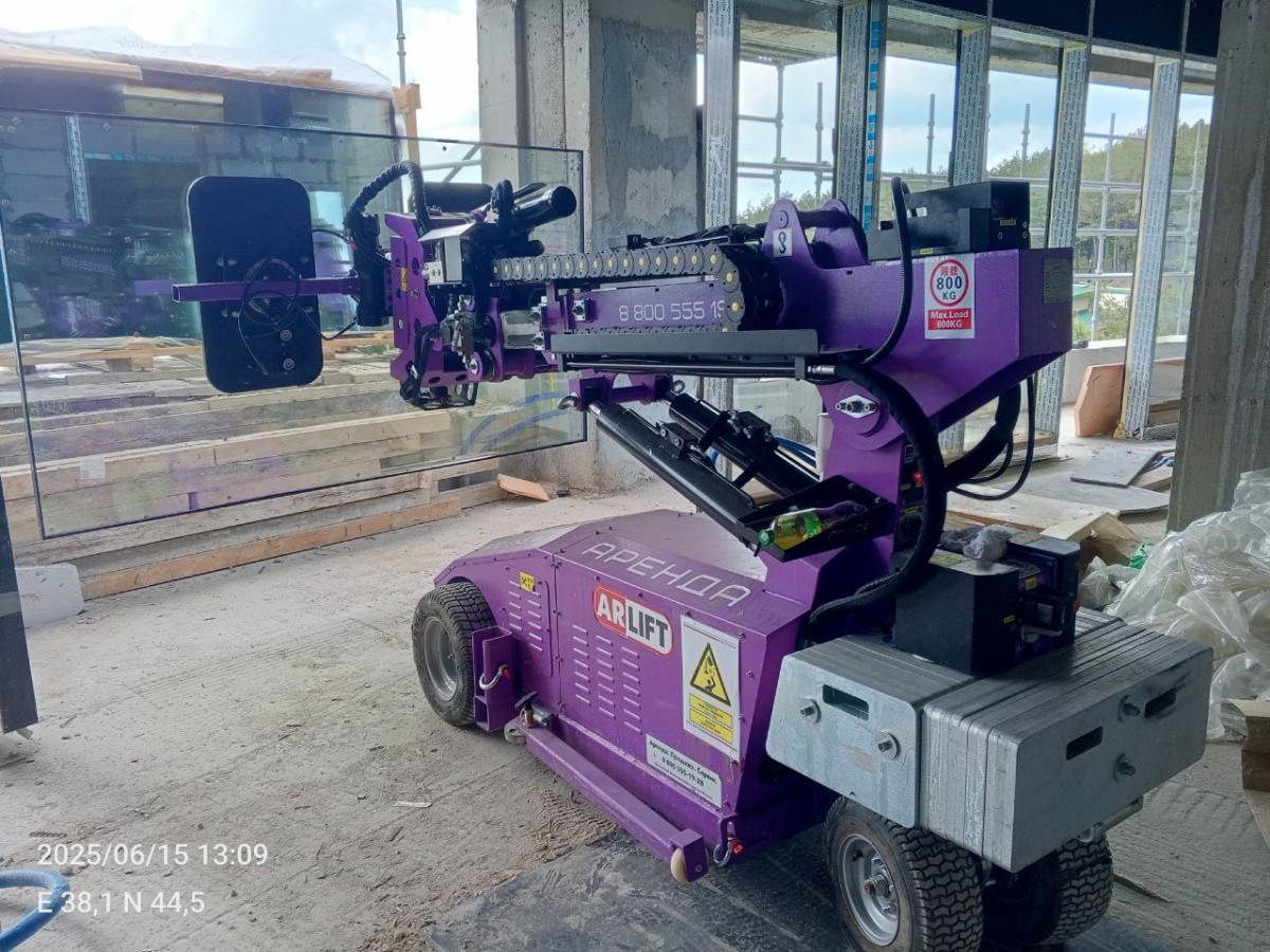 Остекление с помощью вакуумного захвата и стеклоробота Арлифт
