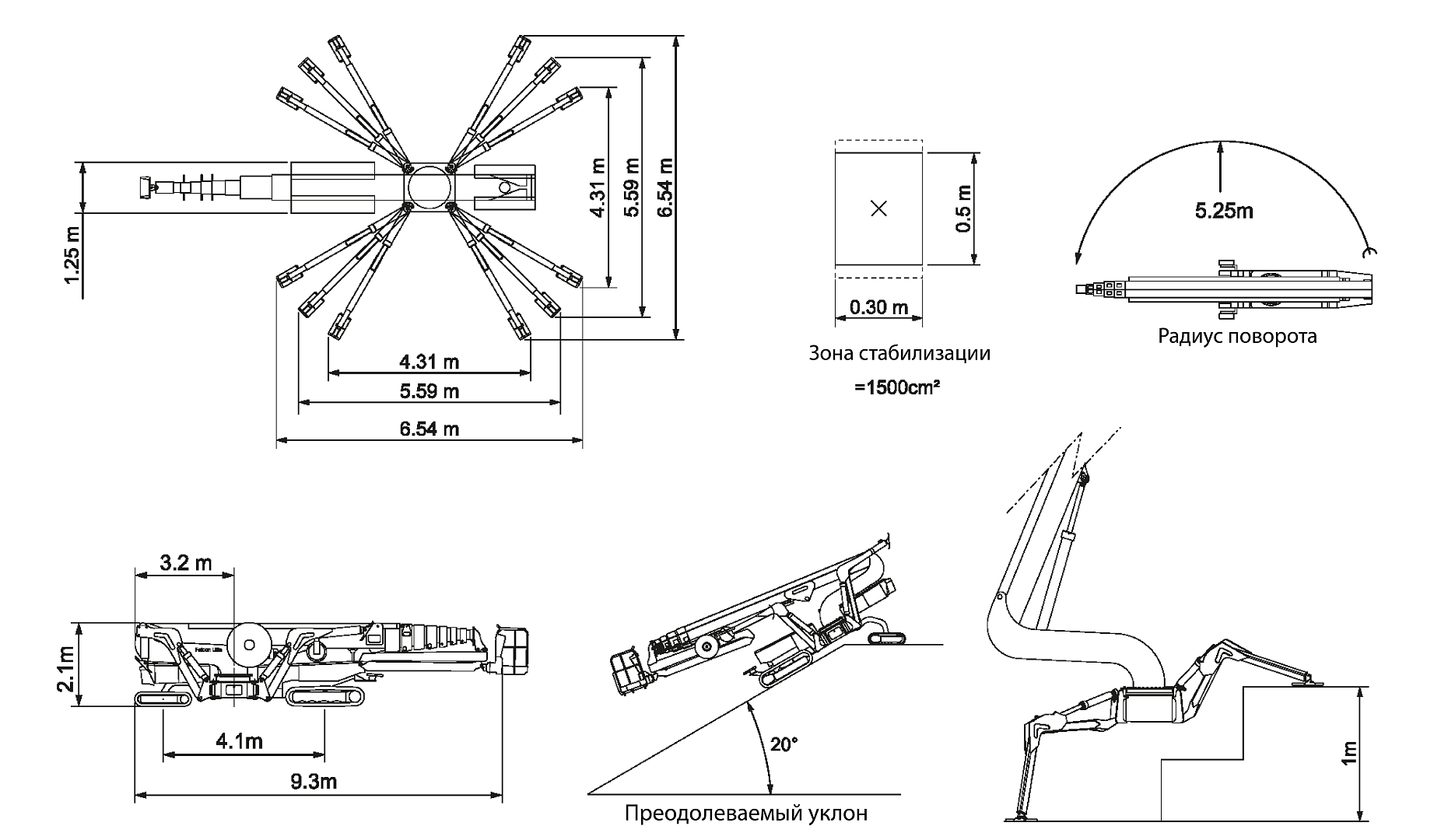 9300 х 1250 х 2100 мм